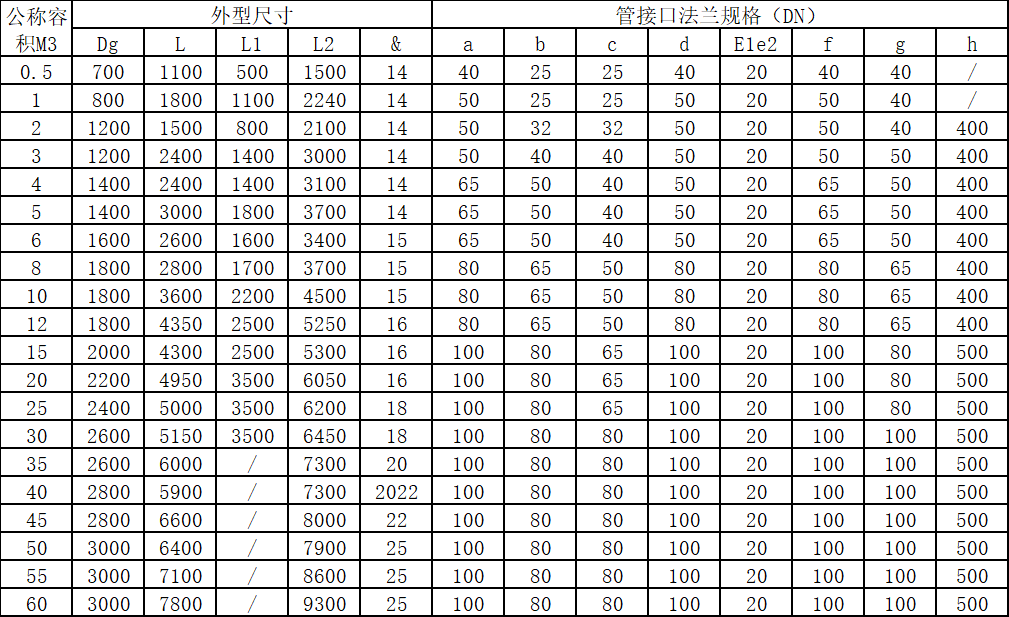 2、操作溫度:PP-10度~~100度臥式貯槽系列規(guī)格表